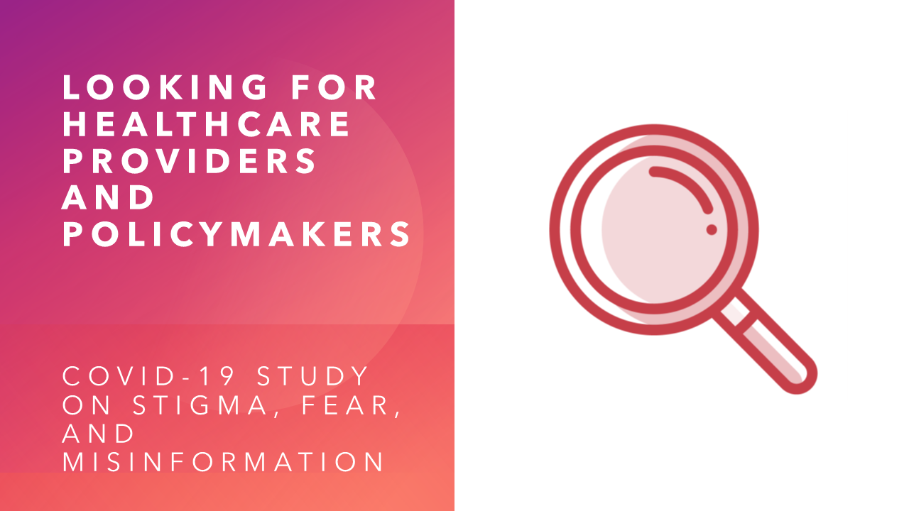 We are aiming to develop tools to combat stigma, fear and misinformation during the COVID-19 pandemic and other infectious disease outbreaks. We are currently recruiting healthcare providers and policymakers to share their experiences and perceptions on stigma, fear, and misinformation associated with COVID-19. Your input will help us shape our tools.